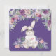 This sweet card features a beautiful watercolor white bunny rabbit sitting amongst wildflowers. A canopy of flowers drapes down from above and it is all set against a purple background. The reverse side of the card says "Wishing you a Hoppy Easter" and then you personalize with your own closing words and your name. The back side is lavender with purple text. All of the text on the back is customizable should you wish to change it to say a different greeting.