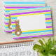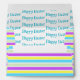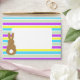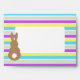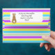 This envelope design has all over, pastel colored stripes. On the front there’s a white box for the address, with a brown bunny silhouette. The back flap has a similar design with an area for the return address. Inside the envelope, there’s a pattern made with the words, Happy Easter.