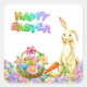 Easter bunny square shape sticker is shown with a festive Easter Bunny print with a Happy Easter text.