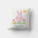 Cute pink Easter bunny throw pillow. Personalize it with your name or "Happy Easter" Designed for you by Blackberry Boulevard.