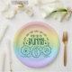 This fun holiday paper plate features Easter treat placement on a pastel rainbow background. Perfect for your kids to leave a special treat for the Easter Bunny.