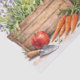 Charming watercolor illustration of a cute bunny beside a wooden planter filled with fresh spring flowers and carrots. The soft pastel colors and delicate hand-painted style create a warm spring and Easter atmosphere. Perfect for decorative tissue paper, gift wrapping, Easter crafts, and seasonal packaging. This whimsical design adds a playful and elegant touch to holiday gifts, party supplies, and spring celebrations.