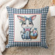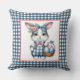 Easter Bunny with Basket of Eggs on Blue Gingham Throw Pillow