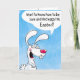 Save this card for your friends who appreciate humor. The drawing is clear and sharp, and the lettering inside is informal and matches the joke.