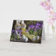 This get well/ Easter card has an image of two stuffed bunnies sitting by side among purple crocus flowers. Caption on front reads " At this special time". Inside has a blank lavender top half and white bottom half with greeting that reads " Wishing you health, peace and joy" and "happy Easter!" Customize this greeting if desired to say exactly what you want.