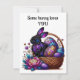 I love these bright colors of purple, blue, black and gold and have created them to look like a stained glass effect on a rabbit with bright colored Easter eggs, sitting in a cane basket. The text "some bunny loves YOU" which can also be personalized.