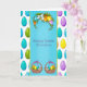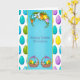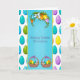 Easter card for Grandma, in a blue, white and colorful design of eggs, Easter baskets, and flowers. Thanks to Creative Fabrica for some of the elements in the design.