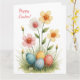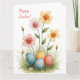 Celebrate Easter with our charming card, adorned with exquisite Easter decorations in delicate pastel hues. This card is perfect for conveying warmth and joy on this special day.