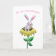 This Easter card has a pink and aqua bunny on a sunflower in center of card. Front pink text reads " To our special granddaughter" in fancy script. Has inside greeting. Inside left is light pink color. Text is pink over white.