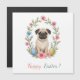 Bright but soft colors create an atmosphere of joy and love, and the charming pug is sure to bring a smile to the recipient's face. Write your heartfelt greetings inside and make this holiday even more special! Perfect for friends and family, this card will be a wonderful addition to your Easter greetings.