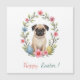 Spread joy this bright holiday with our Easter card featuring a cute pug surrounded by a delicate Easter arrangement in pastel shades. This card is perfect for Easter greetings, adding warmth and coziness to your wishes.