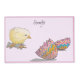 This cute and colorful Easter placemat features an original and unique Illustration of a just hatched baby chick with a highly decorated, colorful egg shell in a repeated pattern on one side and a single large version on the reverse where you can personalize it with your child’s name . Copyright Leah Wiedemer .