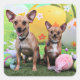 Set in a colorful Easter setting, this Chipin and Chihuahua sit for their 2013 Easter Portrait. The backdrop has four large yellow, green and white Easter Eggs sitting on Easter Grass highlighted with a Bright Blue cloudy sky. The see the entire photoshoot, click over to www.FrankzPawPrintz.photoreflect.com