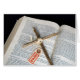 Easter cross with price tag on open Holy Bible for Good Friday or Easter