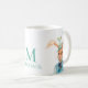 Easter Cute Bunny Rabbit Spring Flowers Monogram Personalized Name Coffee Mugs features a cute watercolor Easter Bunny walking among the colorful Spring flowers with a bird sitting on his hat. Personalise with your name and custom monogram by editing the text in the text boxes provided. Designed by ©Evco Holidays www.zazzle.com/store/evcoholidays