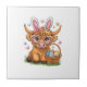 Easter Day Highland Cow Cute Easter Bunny Farmer W Ceramic Tile