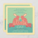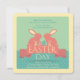 A charming Easter invitation featuring a bunny pair sitting on a banner with the words "Easter Day". The polka dot background is framed in soft yellow. Want to save money on this invitation? Print in the standard, square edge format.