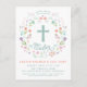 This colorful Easter celebration invitation postcard features an illustrated floral wreath in pastel and spring colors encircling a cross. It can be easily customized for an Easter brunch, egg hunt, or any celebration for this special day in the Christian religion.