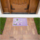 Doormat shown with a Lavender color background and Purple border with a Happy Easter text and a lovely flower print.