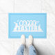 Doormat shown with a Blue color background and Blue border with a Happy Easter print.
