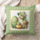 Easter Ducks Easter Egg & Flowers on Green Gingham Throw Pillow