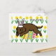 Whimsical and funny Chocolate Labrador cartoon created by Naomi Ochiai. Nice Easter gifts for dog lovers who do love Labrador Retriever dogs. A cute Chocolate Lab is chilling out on his/her colorful Easter Egg!! You can customize text and more!! Happy Easter! Daffodil floral pattern in spring.
