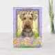 This Airedale Dog is surrounded by Easter Egg decorated Cookies and looking forward to helping you send Easter Greetings and to welcome in Spring. This design is available in over 70+ Dog Breeds. If you don't see your favorite Dog Breed OR if you would like YOUR OWN DOG in this design, just contact me. There is also a version of this design that you can upload your own photo into.