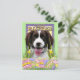 This English Springer Spaniel Dog is surrounded by Easter Egg decorated Cookies and looking forward to helping you send Easter Greetings and to welcome in Spring. This design is available in over 70+ Dog Breeds. If you don't see your favorite Dog Breed OR if you would like YOUR OWN DOG in this design, just contact me. There is also a version of this design that you can upload your own photo into.