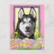 This Siberian Husky Dog is surrounded by Easter Egg decorated Cookies and looking forward to helping you send Easter Greetings and to welcome in Spring. This design is available in over 70+ Dog Breeds. If you don't see your favorite Dog Breed OR if you would like YOUR OWN DOG in this design, just contact me. There is also a version of this design that you can upload your own photo into.