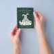 Cute Easter Bunny egg hunt and brunch budget invitation with an adorable spring bunny rabbit holding a yellow and purple spotted Easter egg surrounded by daisy floral and eucalyptus foliage on an emerald green background. Handwritten typography script templates for all the details of your fun spring party. Original artwork by artist Catherine Sweetman