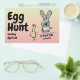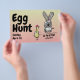 A rascal rabbit giving a mother hen directions to find her eggs while hiding them behind his back. Get some kids to help her by customizing this flyer for your Easter Egg Hunt.