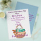 This fresh as spring flyer has been designed for an Easter egg hunt, but the text is an example and can be edited or removed to suit your needs. At the bottom front is a pretty image of a woven straw basket with turquoise eggs, a ribbon and tulips. The back is solid blue with some text. You can move, delete or change the text if you wish to mail this flyer.