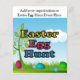 Easter egg hunt for kids and grown-ups. Lovely bright spring day with green grass, blue sky, colorful flowers and dyed Easter eggs in pink, blue and green. Announce the big community Easter egg hunt with this fun merchandise.