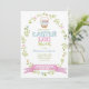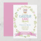 Easter Egg Hunt Invitation with pastel colors and pretty floral oval wreath and Easter egg basket.