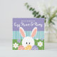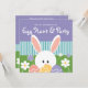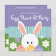 A cute bunny peaks out behind pretty pastel Easter eggs on these cute custom Easter egg hunt party invitations that can be worded to say whatever you want on the back and front of these cards. Artwork © Chrissy H. Studios, LLC. All Rights Reserved.