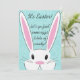 Awww, look at this sweet little white bunny with his huge ears. He pops his head up to tell all the kids that there will be an Easter Egg Hunt with lots of candy too. All text can be customized.
