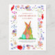 Celebrate Easter in style with this budget-friendly watercolor Easter bunny invitation, perfect for an Easter egg hunt, Easter brunch, or spring garden party. Featuring a cute, colorful bunny rabbit painted in bright cheerful tones, holding three Easter eggs, this charming design is surrounded by a boho wildflower border with cornflowers, poppies, and meadow garden flowers for a fresh spring feel.