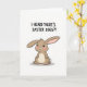 This card features a fawn-colored bunny-like creature centered on a bright white background 🐰. Its wide dark eyes, rosy cheeks, and ears stretched outward give it an eager, friendly look, like it’s sharing a little secret with you. The simple cartoon styling and soft shading keep the focus on the character’s tender expression, suggesting a sweet bond between giver and receiver. Above the bunny, the message “I HEARD THERE'S EASTER EGGS?!” sits near the top in thick, hand-drawn lettering. The text is black and stands out clearly against the white space, leaving plenty of breathing room around the words. A faint gray shadow beneath the bunny adds a touch of depth without distracting from the minimal palette. The overall scene stays uncluttered and spring-ready, with the bunny’s warm tan fur and pink cheeks doing most of the visual work 🌷. A small, soft-edged shadow pools directly under its feet on the white backdrop.