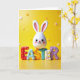 This design shows an egg-shaped bunny figure with upright ears, glossy white shine, rosy cheeks, tiny dark eyes, and a small red nose, leaning in as if posing sweetly for a friend 🐰. It sits atop chunky, raised letters arranged in a neat row, giving the scene a cozy, togetherness-at-a-glance feel. The background is a sunny yellow field with soft, out-of-focus round shapes that float like gentle light spots, adding depth without distracting. Bright lighting highlights candy-like textures, and a reflective surface below mirrors the figure and letters for an extra glow. The word “EASTER” is spelled across the bottom, with the text centered and stacked under the bunny, each letter thick and three-dimensional. The first “E” is red with gold polka dots, the “A” is sky blue with small red spots, the “T” is teal with crisp white accents, and the final “E” is white with tiny flowers and gold stars 🌷. Subtle shadows sit under each letter, and the yellow backdrop fades slightly lighter toward the center behind the ears.