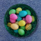 A nest of colored Easter eggs.