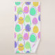 This towel set has a purple washcloth, a green hand towel, and a bath towel with an Easter design of eggs in purple, yellow, green, blue, and pink scattered about with their outlines.