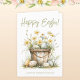 Sweet Easter eggs watercolor beige and yellow flowers, cute holiday card to send your family's Easter message.