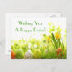 Easter Eggs Hiding in Grass with Daffodils Holiday Postcard