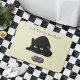 A cute black cat is about to pounce on some Ukrainian Easter eggs in a backdrop of yellow