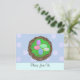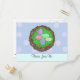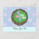 A soft blue and white polka dot background with a soft mint green border. A twig nest filled with green Easter straw and colorful Easter eggs. Customize message as desired.