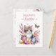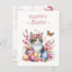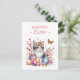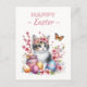 Easter postcard featuring a kitten with cherry blossoms and Easter eggs. Customizable.