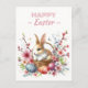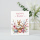 Easter postcard featuring a Rabbit with cherry blossoms and Easter eggs. Customizable.
