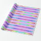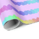 Wrapping paper decorated with rows of brightly colored Easter eggs on a lavender background.