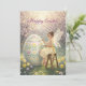 Send a little springtime magic with this Easter Fairy card. This enchanting design features a delicate fairy painting a beautifully decorated Easter egg in a dreamy blossom garden, surrounded by soft light and spring flowers. The front includes adjustable text: “Happy Easter.”