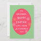 This is a cute, modern floral, Easter card design. This illustration design is bold and bright with an Easter egg shape filled with retro flowers. It is in bright and bold spring colors, green, magenta pink, and yellow with white 2-D typography. On the front it says "Happy Easter", and on the back it says "To Grandma, Happy Easter! Love From Alexandria xxx". To personalize, simply add your name and who the card is for in the personalize this text box. Here you can also change the text on the front "Happy Easter", if you want to. Check out the design editing tool to change the color. For help with personalization, or for a custom design, contact me via zazzle chat or email: ursuladawnmoon@gmail.com